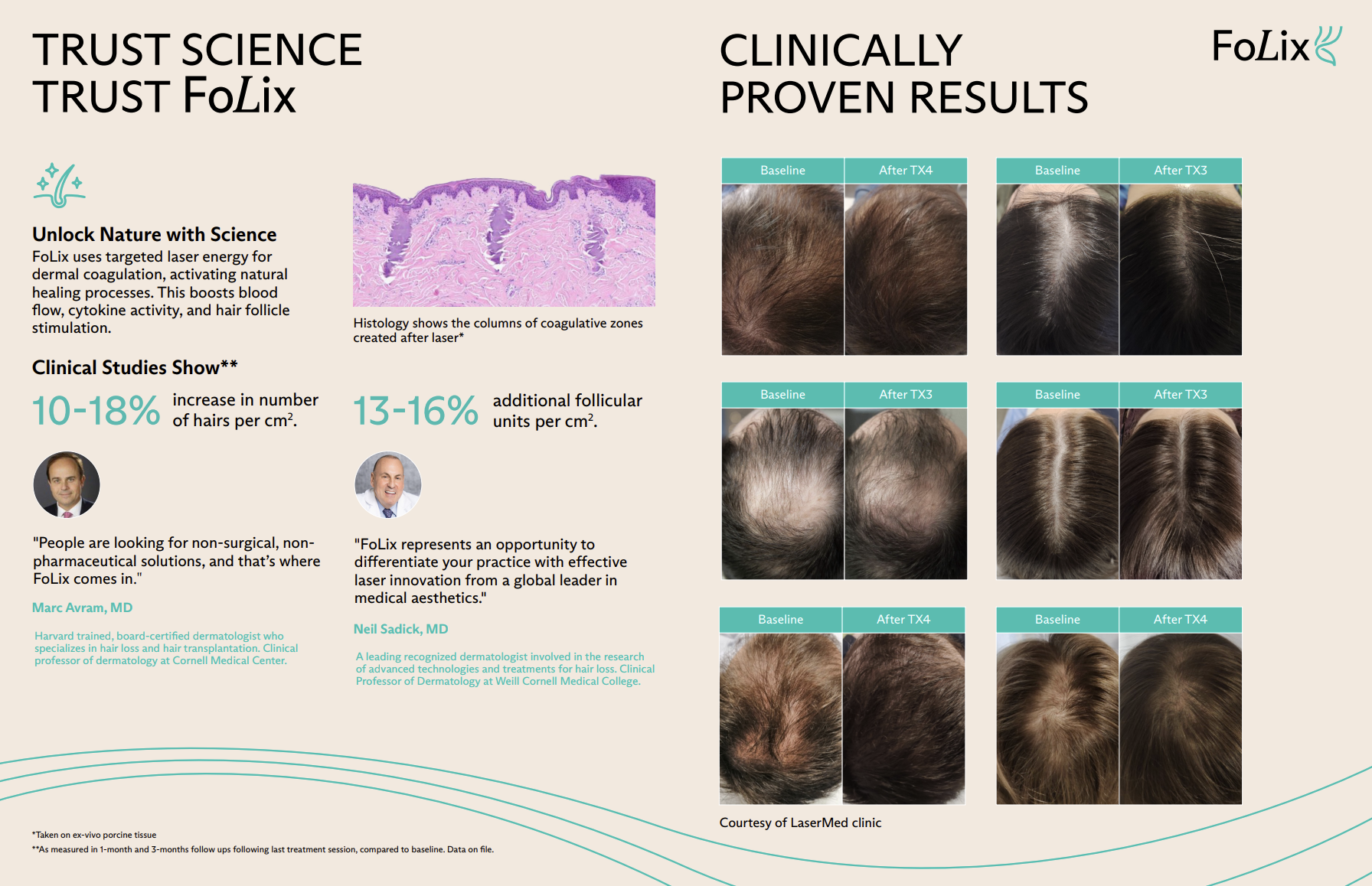 FoLix is a revolutionary non-ablative fractional laser system using hair stimulation technology, providing effective, safe, and simple treatment for women and men.